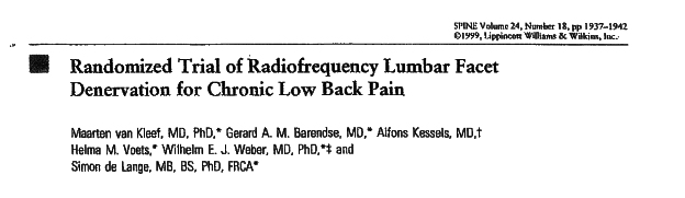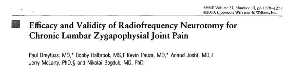 Перевод: «Эффективность и обоснованность радиочастотной невротомии в лечении хронической поясничной боли межпозвонковых суставов («фасет-синдром»)».