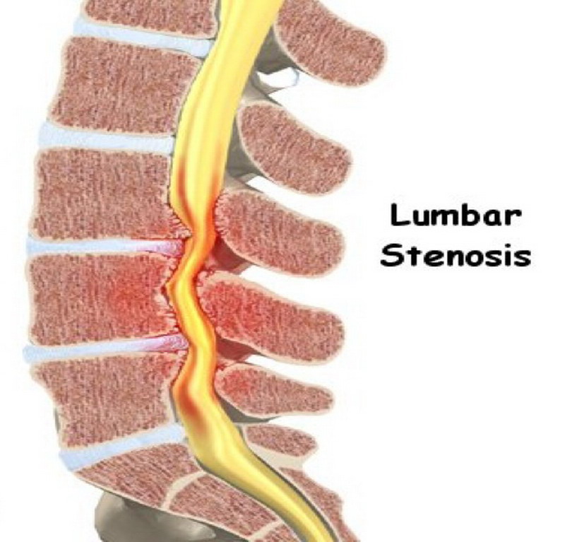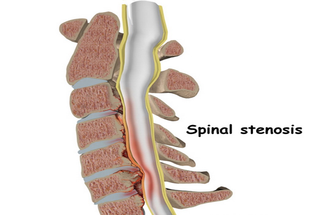Стеноз (сужение) позвоночного канала вызывает сдавление нервных образований костными разрастаниями позвонков, обызвествленными грыжами, гипертрофированной желтой связкой и встречается в более зрелом и пожилом возрасте. Крайней степенью развития стеноза является перемежающая нейрогенная хромота, когда от боли и слабости в ногах человек не может ходить. При этой патологии делают хирургическую декомпрессию (освобождение от сдавления) и стабилизацию позвоночника с использованием различных металлоконструкций.